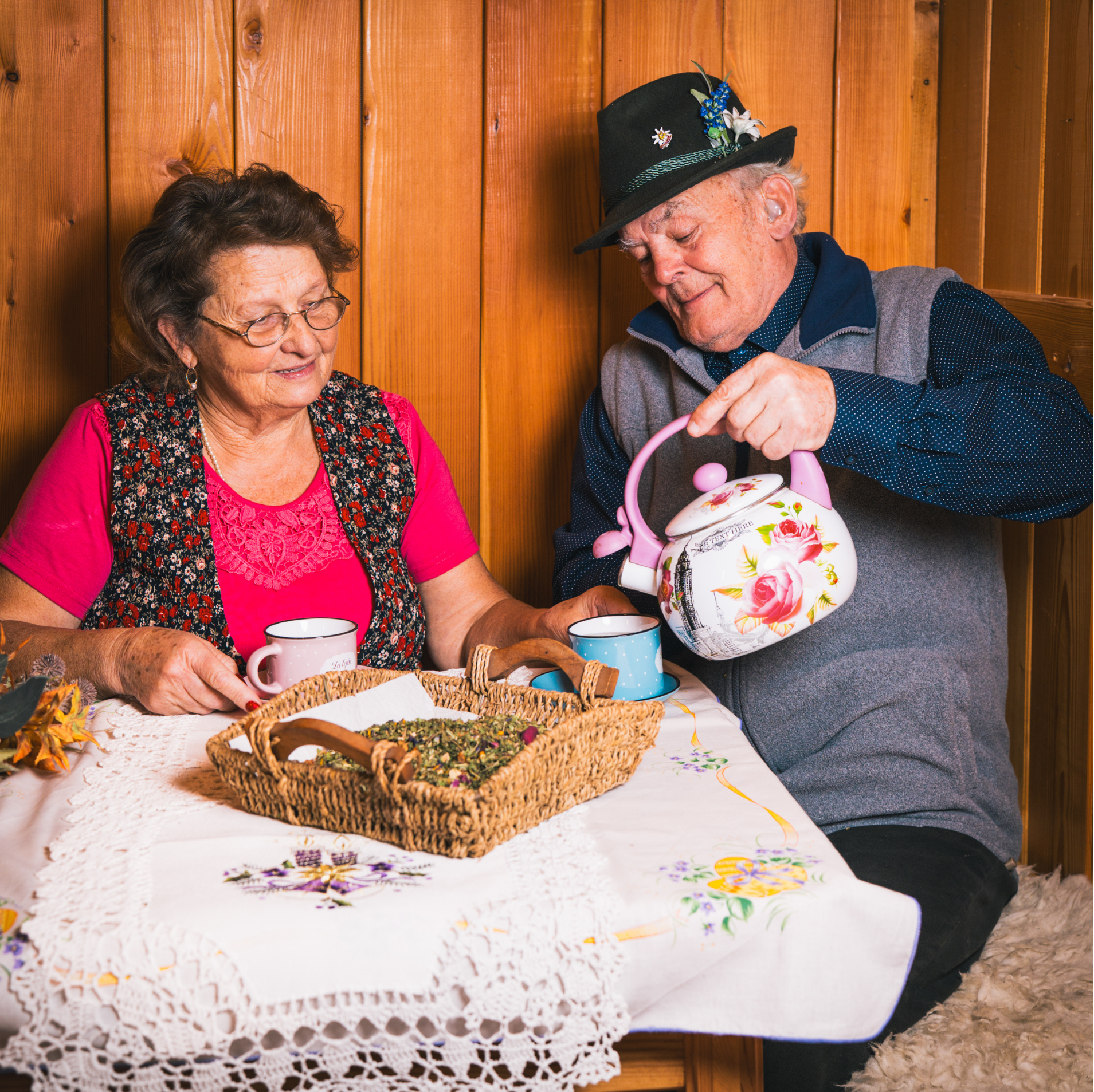 We harvest all our herbs from spring to autumn across Slovenia — from the hills of Gorenjska, along the coast, to plants grown at home. The entire Podlipnik family takes part in the process.